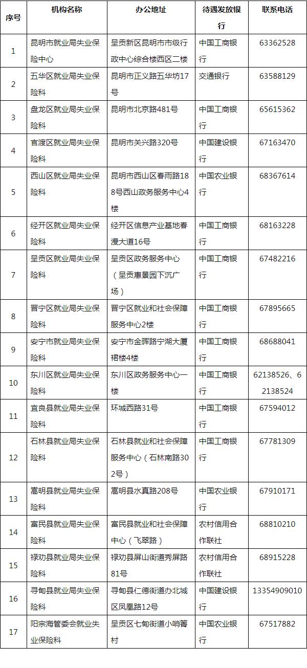 昆明失業(yè)保險經(jīng)辦機構待遇發(fā)放聯(lián)系方式
